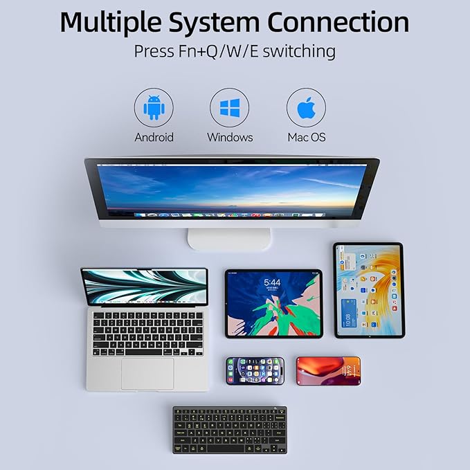 - 3 Devices Switch with A Single Clicking: This keyboard is able to connect to 3 devices at the same time. You can switch between 3 devices with a single key clicking.