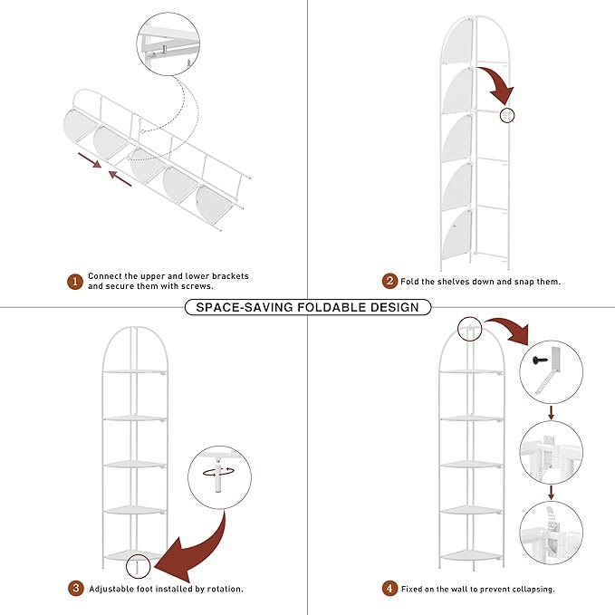 - 【Foldable Design And Effortless Assembly】Our Crofy corner shelf can be folded to store when not in use. You can fold or unfold it in a few seconds without any assembly. With its foldable design, it only takes up a small space, which can save your space.