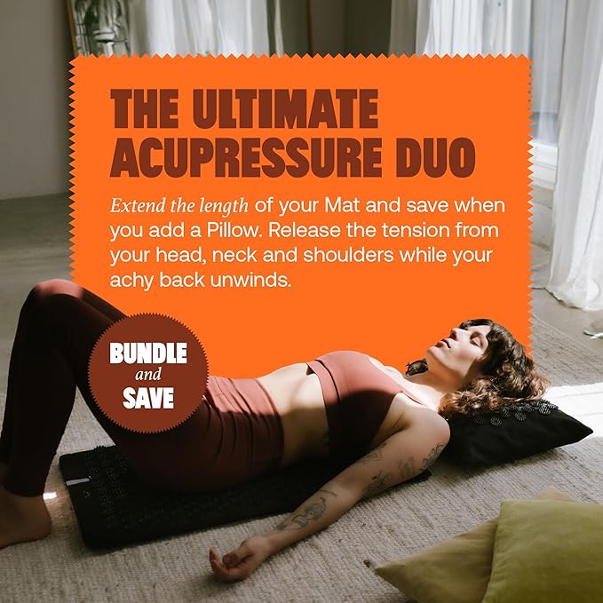 - PAIRS WITH THE PILLOW FOR THE ULTIMATE ACUPRESSURE DUO: Maximize your downtime and take relaxation further with the Premium Shakti Acupressure Pillow; extend the length of your ShaktiMat and apply targeted relief in every natural curve.