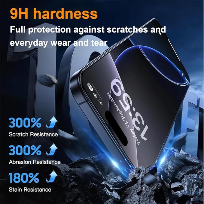 OneFish Privacy Screen Protector for IPhone 16 Anti-Spy Tempered Glass Dust-Free Bubble-Free Anti-Fingerprint 9H Scratch Protection & Hassle-Free Installation Frame [2-Pack]