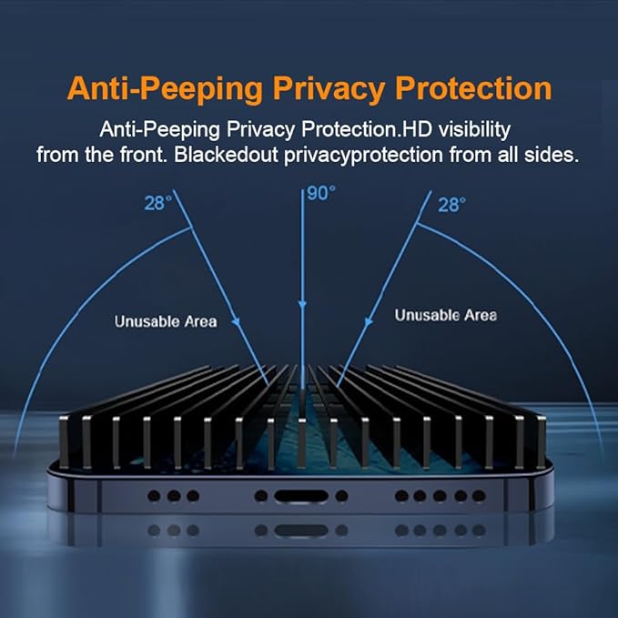 - True 28° Privacy Protection: It offers optimum 28° degree peep(Smaller viewing angles mean stronger privacy protection).even your friends or colleagues sitting next to You Also Can't See on Your Messages. The screen is only visible to persons directly in front of the screen, Maximum protection for your sensitive information and privacy.