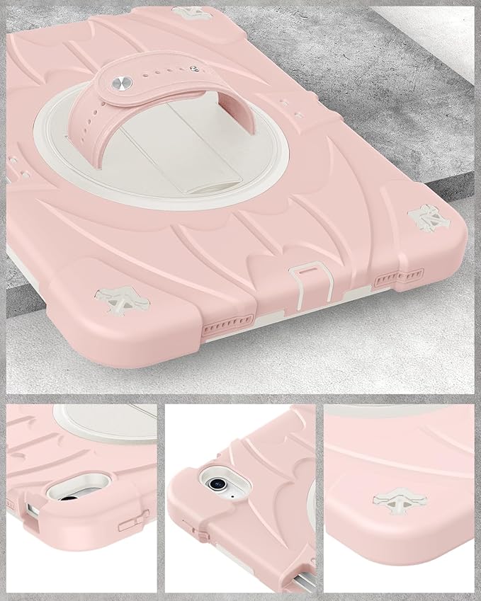for iPad(A16) 11 inch 2025 case/10.9 inch iPad 10th Generation Case, Heavty Duty Shockproof Full Protective Case with Screen Protector and Rotatable Hand Strap, Shoulder Strap (Light Pink)