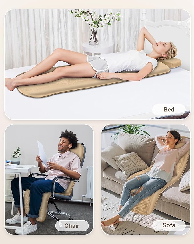 - Soothing Heat : Imagine that when the massage mat is working, a pleasant warmth radiates from the back position. With 2 temperature levels, the warmth of massage mat penetrates into the muscles, reducing stress and stiffness. It's a great remedy for chilly nights or enhancing the soothing effect on your tired back.