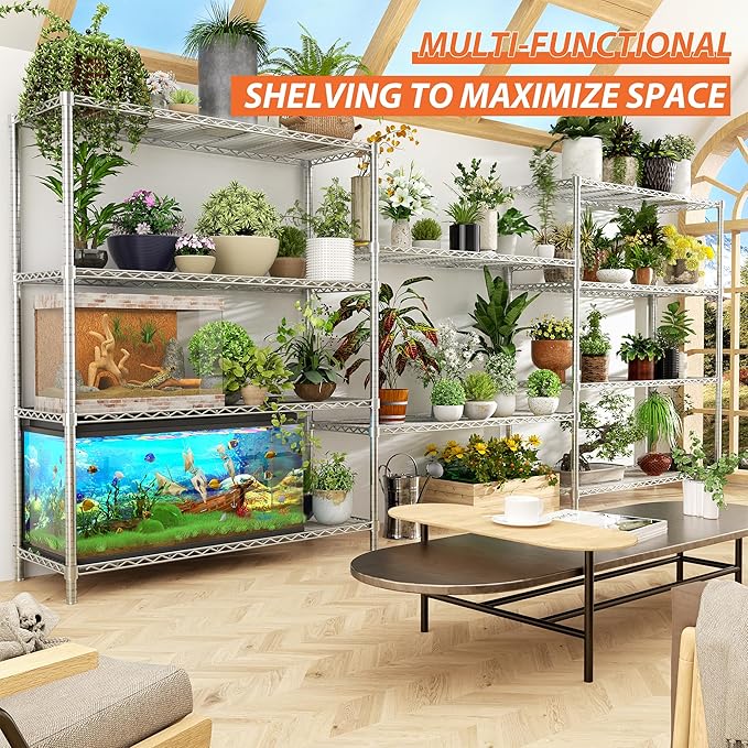 - Easy to Assemble: No tools needed for this metal shelving; High-quality clips fit perfectly with support poles, and clear instructions allow one person to finish in 15 minutes; Anti-tipping measures ensure stability and safety for heavy items