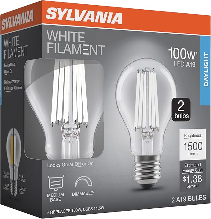 - SYLVANIA white filament line offers a variety of shape options and unique filament design for a vintage look with modern technology.
