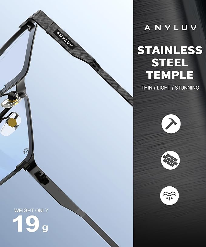- Modern & Masculine Look: ANYLUV blue light glasses combine functionality with a sleek, modern aesthetic. The versatile design complements any outfit, making them perfect for work or casual wear.
