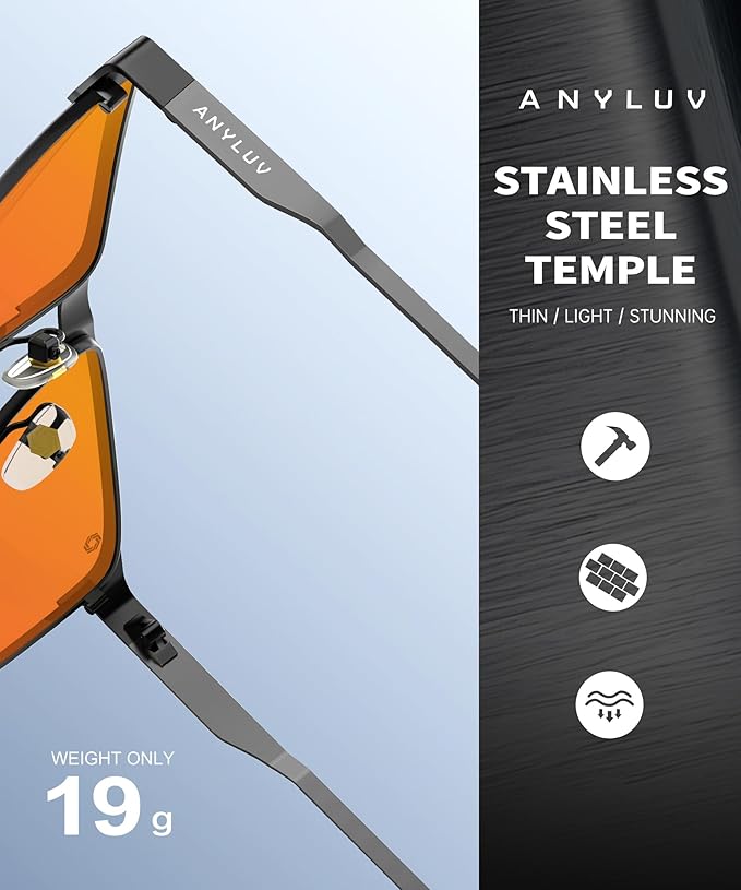 • Modern & Masculine Look: ANYLUV blue light glasses combine functionality with a sleek, modern aesthetic. The versatile design complements any outfit, making them perfect for work or casual wear.