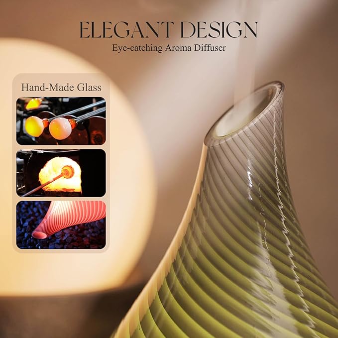 - UNIQUE ART DECOR - 280ml glass essential oil diffuser with star-shaped glass cover & wood grain base. Adds artistic harmony to your living space, perfect for bedrooms, living rooms, kids' rooms, studies, offices, & yoga studios. Enhances ambience