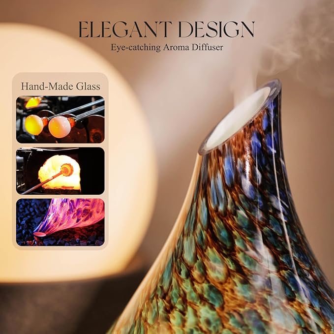 - UNIQUE ART DECOR - 280ml glass essential oil diffuser with star-shaped glass cover & wood grain base. Adds artistic harmony to your living space, perfect for bedrooms, living rooms, kids' rooms, studies, offices, & yoga studios. Enhances ambience