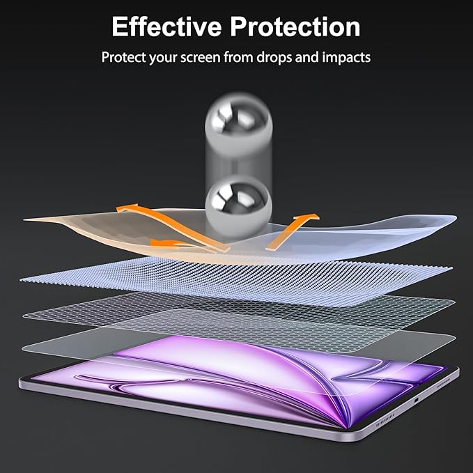 - 9H hardness screen protector with laser-cut dimensions can effectively protect your iPad air 13 inch from unwanted scuffs and scratches in daily use