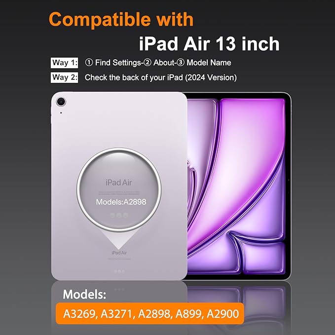 - Only compatible with iPad air 13 inch m3 7th generation & m2 6th generation (Model No. A3269, A3271, A2898, A899, A2900). Please check your tablet’s Model No. before paying to avoid wrong purchase