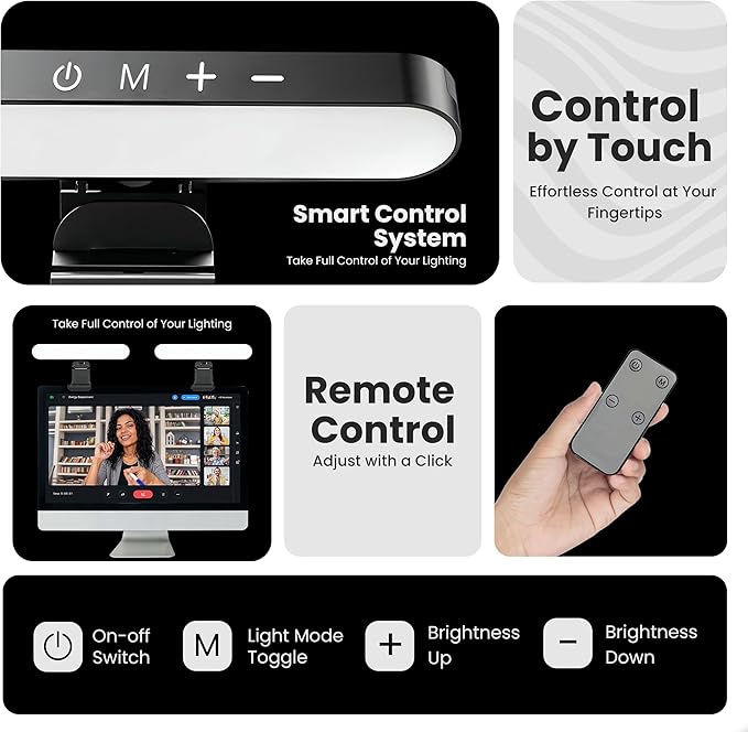 Monitor Light Bar for Computer & Laptop – Remote&Touch Control, Streaming Video Light, Adjustable Key Light for Desk & Zoom Meetings, Screen Lamp with Remote Control, USB Powered Computer Light