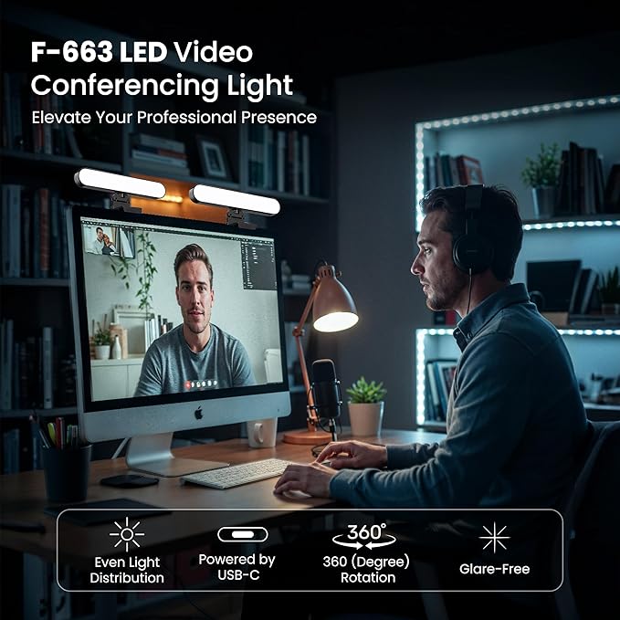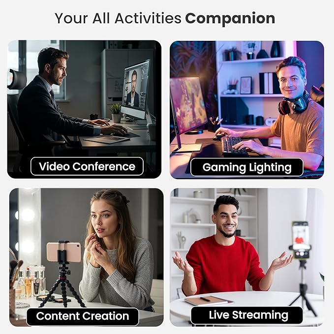 - IDEAL FOR VIDEO CALLS & MEETINGS: Designed as a dimmable key light and computer light, it ensures you look clear and professional in Zoom meetings, online classes, and video conferences. Balanced lighting reduces shadows, boosting confidence and productivity during calls.
