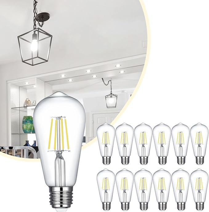 - 3、DIMMABLE 100%-10% & NO FLICKER:Upgrade your lighting with our ST19 E26 LED bulbs! The ST19 E26 LED bulb 60 watt dimmable soft white is perfect for smooth dimming from 100% to 10% with most dimmer switches. Experience no buzzing, humming, or flickering for the ultimate lighting solution with our ST19(58)E26 LED bulbs.