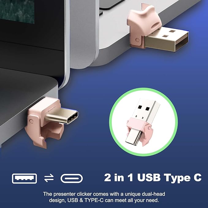 QUI Presentation Clicker for PowerPoint, RF 2.4GHz USB C Wireless Presenter Remote with Volume Control, PowerPoint Clicker Slide Advancer for Mac, Windows, Laptop, Keynote