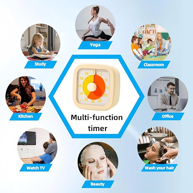 - 【Time Management Masterpiece】: The 60-minute visual timer aids in organizing and focusing attention. Perfect for desktops, this time timer enhances time management and productivity for both children and adults while engaging in various activities.
