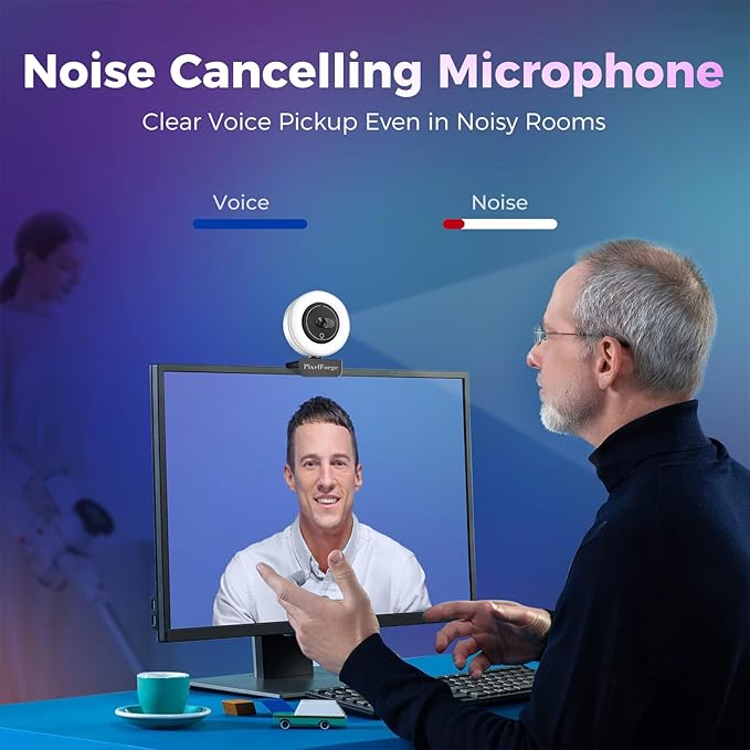 - 【Advanced Noise-Canceling Microphone for Clear Audio】Equipped with a high-quality noise-canceling microphone, our 4K webcam filters out background noise, ensuring crystal-clear audio for calls and recordings. This feature makes the webcam ideal for busy environments, guaranteeing your voice comes through clearly.