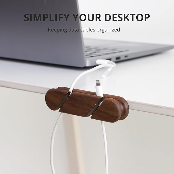 muso wood Cable Clips, Walnut Cord Holder, Cable Management Cord Organizer, Cable Straps for Desk Home and Office