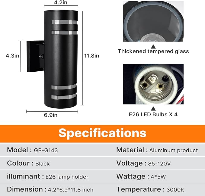 - 【Multi-scene Applicable】This modern outdoor wall light is designed with up and down double lights,the light is evenly distributed and will not be distorted. 3000K warm light creates a warm and cozy atmosphere for your home. Perfect for patio, stairs, hallway, living room, garden, porch, balcony, garage, indoor and outdoor.