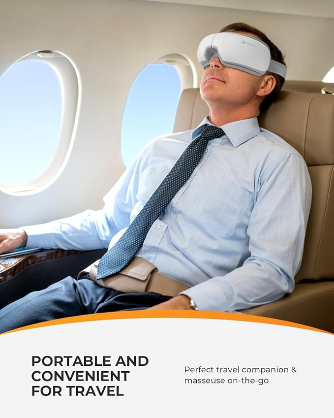 - Travel & Work Companion with Portable Eye Massager The CooCoCo electric eye massager features a 180° foldable design, making it easy to bring along to the office, on a plane, or while traveling. With a 1500mAh battery and Type-C USB charging, it lasts over 3 hours on a single charge, giving you long-lasting relaxation wherever you go.The adjustable headband ensures a comfortable fit for most face sizes—simply adjust it to find the perfect fit.