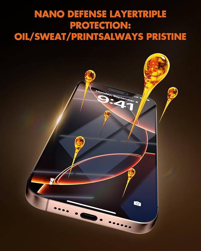 - 【Nano-Enhanced Oleophobic & Scratch Guard】Electroplated oleophobic layer repels water, oil, and 99% fingerprints. Waterproof nano-coating delivers lab-tested scratch/wear resistance—endures 20,000+ swipes without haze. Enjoy zero-lag touch sensitivity for gaming. Anti-fingerprint surface wipes clean instantly.