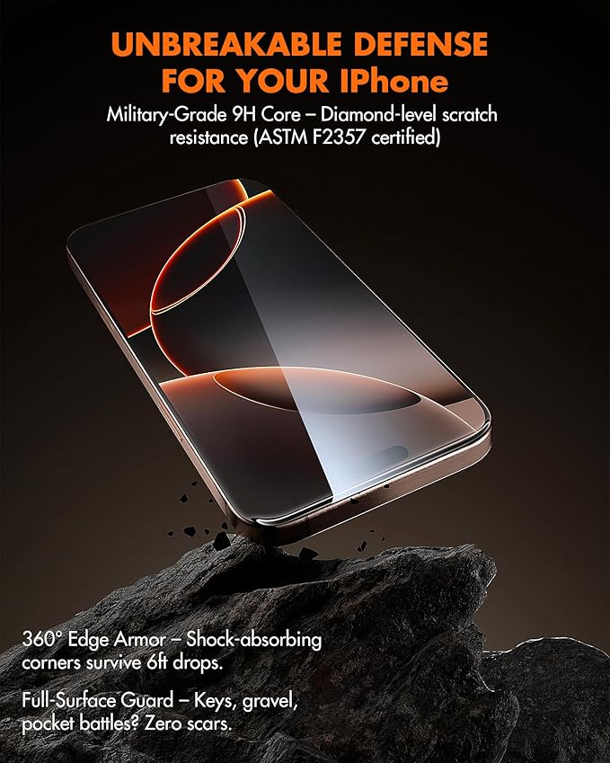 - 【9H+ Military-Grade Shatterproof Defense】Lab-verified to survive 12ft face-down drops & 45lb impacts! Military-Grade 9H+ hardness tempered glass features contour edges that lock onto curved screens, forming invisible armor. Edge-to-edge shatter-proof protection against daily drops and cracks.