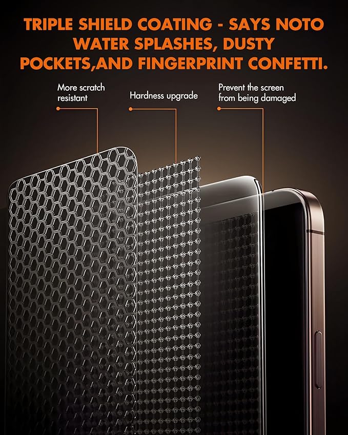 - 【Advanced Nano-Coating Defense】Crafted from waterproof and oleophobic tempered glass with an electroplated nano-coating, this screen protector delivers extreme Scratch & Wear Resistance—lab-tested to endure 20,000+ scrapes. Enjoy zero-lag touch response for quick swipes and intense gaming. The anti-fingerprint surface stays clean with a quick wipe, maintaining flawless clarity.