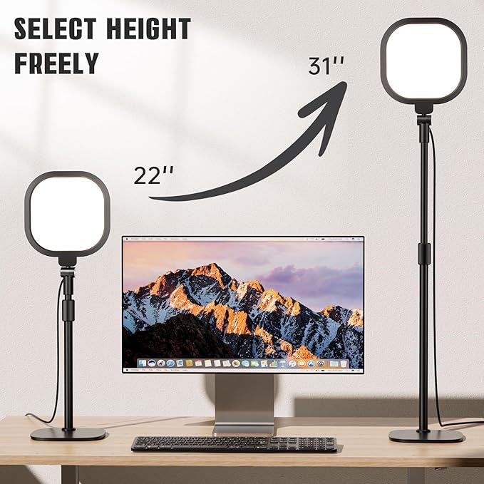 - TAILORED LIGHTING FOR YOU: LitONES desk ring light is packed with an upgraded, telescoping height adjustment bracket that ranges from 22 to 31 inches, tailor-made to light up your computer desktop like a pro. With a 360-degree rotating lamp head, you can effortlessly direct the light wherever you need it. Whether you're remote working, jumping on a Zoom call, recording a video, crafting, sewing, painting, or live streaming on social media, you'll always be in the perfect light with LitONES