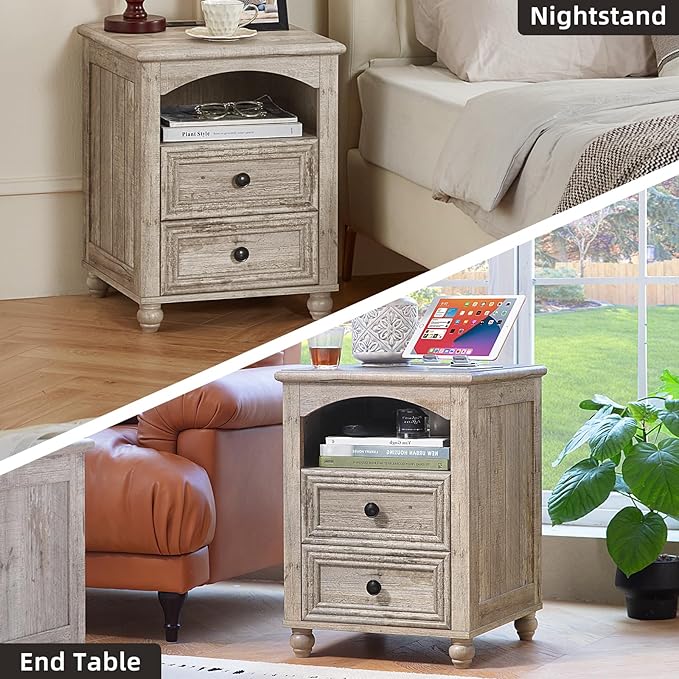 - [Farmhouse Nightstand] The wooden nightstands are both beautiful and functional. Their shape coupled with the natural texture of the surface enhances the overall visual appeal. A variety of colors to choose from, it combines farmhouse and modern style, which is suitable for all kinds of home decor. Beautifully crafted bedroom night stand can be a reliable and beautiful scenery to your living space.