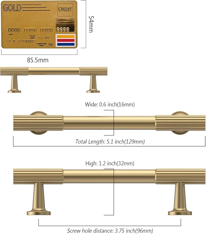 - Measurement: Hole Centers(CC):3.75 inch(96MM); Overall Length:6 inch(150MM);Width:0.5 inch(12MM);Projection:1.3 inch(34MM); Please check the Size of handles you require carefully before purchasing.
