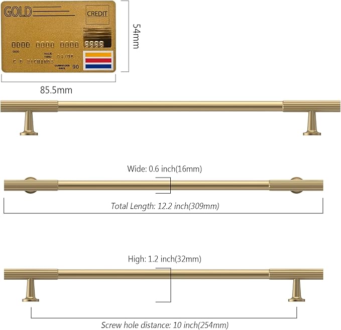 - Measurement: Hole Centers(CC):10 inch(254MM); Overall Length: inch(MM);Width:0.5 inch(12MM);Projection:1.3 inch(34MM); Please check the Size of handles you require carefully before purchasing.