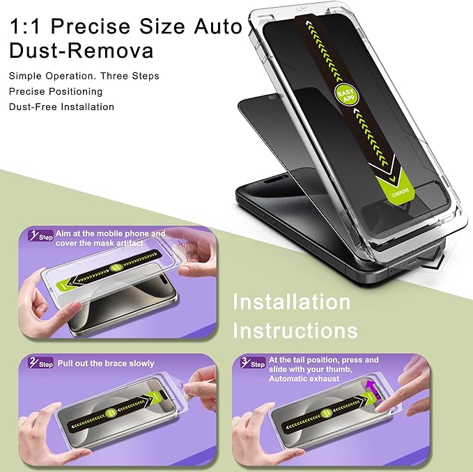 - Auto Dust Removal & Easy Installation: The SY SHANGYAN Matte Privacy Anti-Spy Screen Protector for iPhone 15 Pro Max features advanced auto dust removal and self-aligning technology for a flawless,bubble-free install every time.Just place the frame,pull the tab,and press to push out any air bubbles.Installation is quick,easy,and hassle-free.For best results,watch our step-by-step installation video before applying
