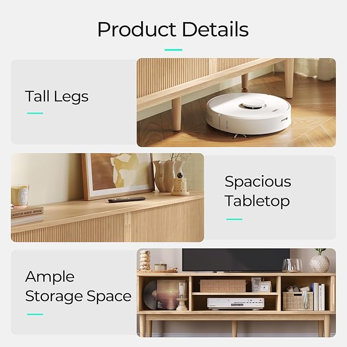 - Spacious and Versatile Storage - Dimension: 70(W) x 15.8(D) x 21.7(H) inches, the tabletop fits TVs up to 75 inch and soundbar. With 4 storage shelves and two narrow spaces on each side, this sleek TV stand offers plenty of room for game consoles, set-top boxes, and DVD players