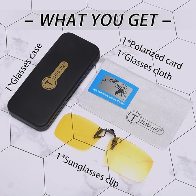 - ❤What You Get- night vision clip-on * 1, storage case * 1, high quality cleaning cloth * 1, polarization test card * 1, as well as our 18-month worry-free warranty and friendly customer service.