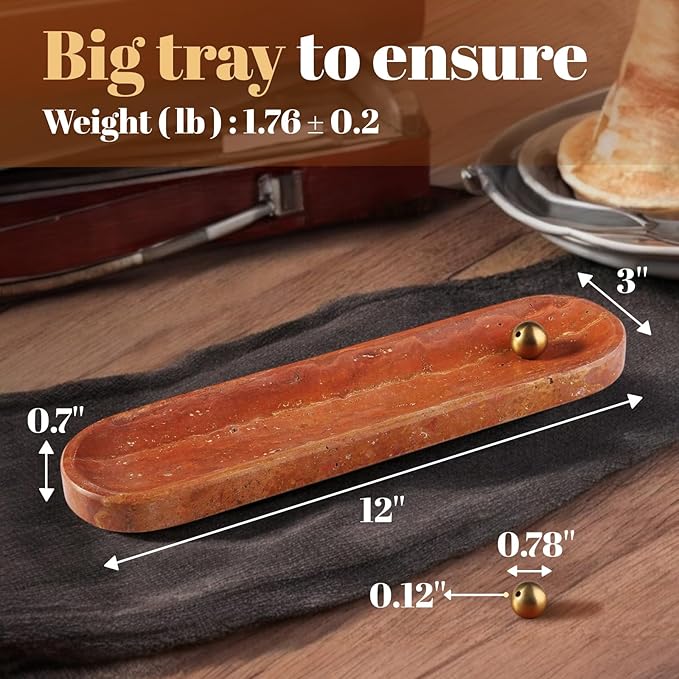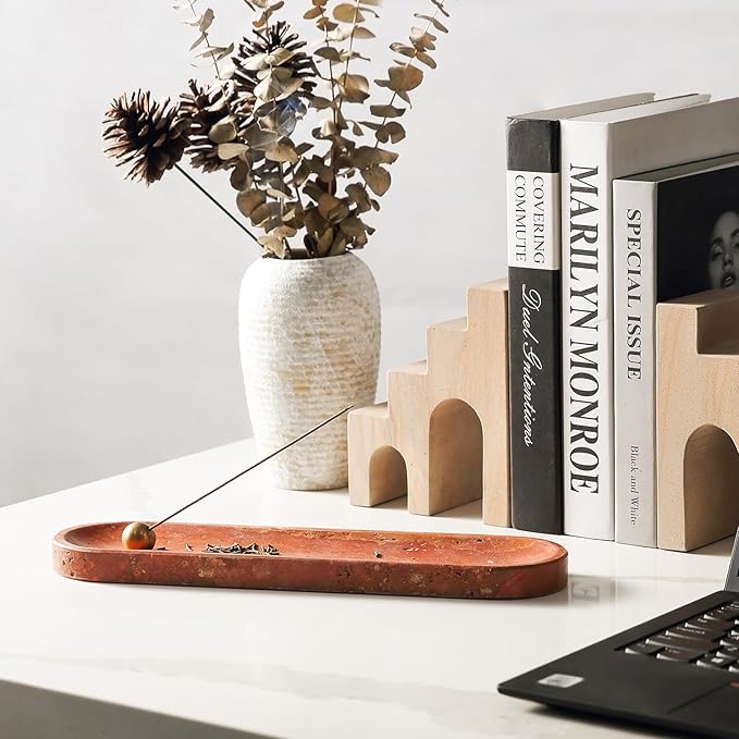Koville Red Travertine Incense Holder, Incense Holder for Sticks, Natural Stone Incense Burner Ash Catcher for Meditation Yoga SPA, Balsam Fir/Palo Santo/Sage/Cone, Home Table Decor
