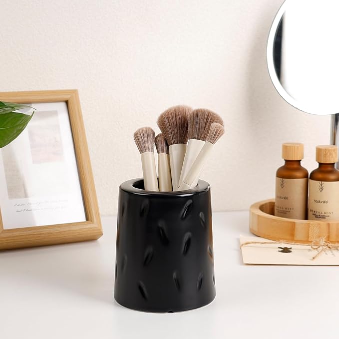 - Elegant Raindrop Design: This ceramic holder features a unique raindrop carving design, adding a touch of sophistication and artistry to your desk or vanity, perfect for office, home, or school use.