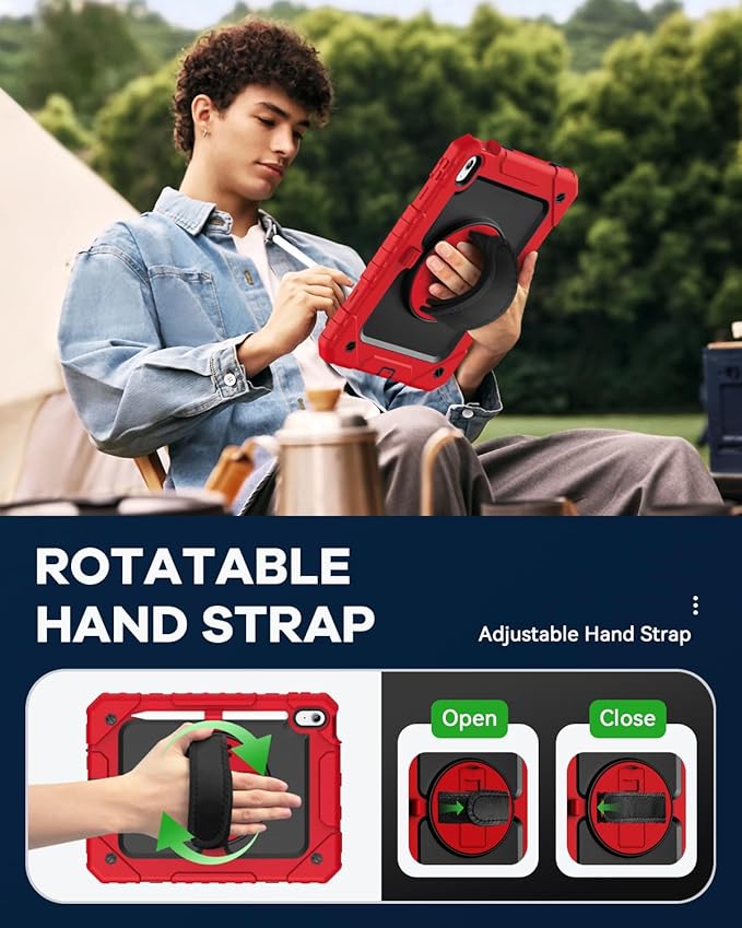- With Shoulder/Hand Strap & Rotating Stand: The ipad 10th case with portable shoulder/hand strap makes your tablet more conveniently outdoors & indoors, such as display your iPad behind car head rest. 360 degree rotating kickstand provides different typing & viewing angles for studying, gaming, watching video, etc.