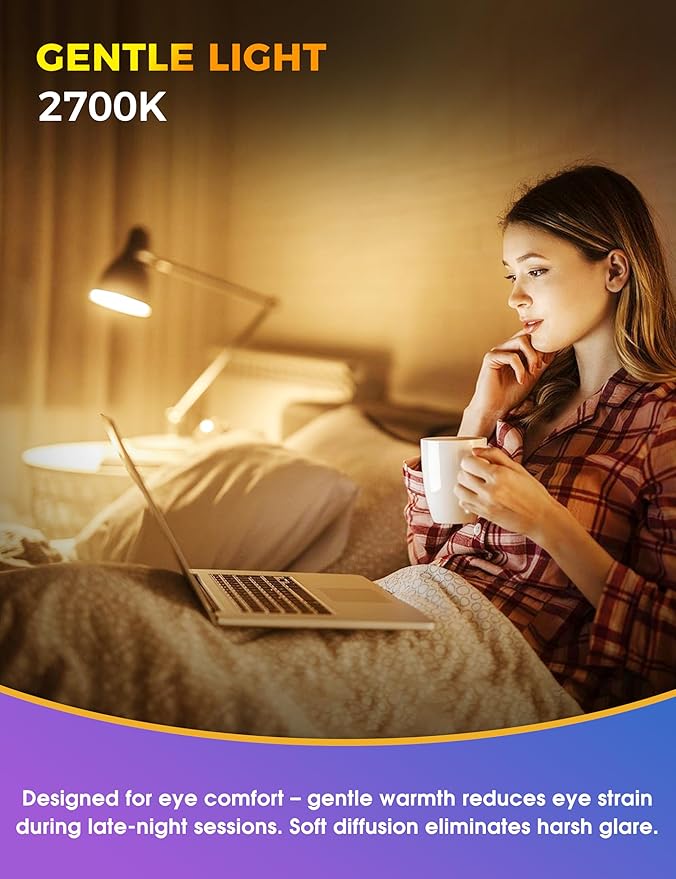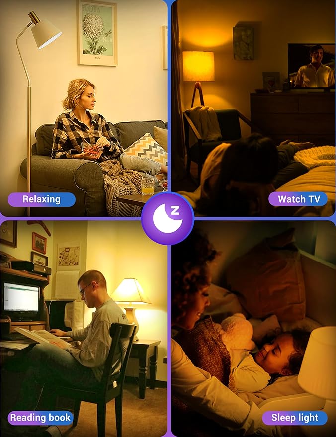 - 【Comforting Light】These warm light bulbs emit a cozy 2700K light for daily relaxation and a tranquil 1800K sleep light bulbs mode ideal for naps—soothing your mood around the clock with switch simplicity.