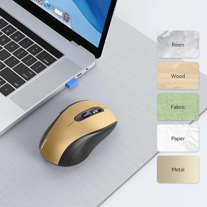 TECKNET Bluetooth Mouse, 4000DPI Wireless Mice for Laptop 2-in-1(BT 5.0/3.0+2.4Ghz) Computer Portable PC Mouse Wireless with USB Receiver for Mac (USB-A+Bluetooth, Black Gold)