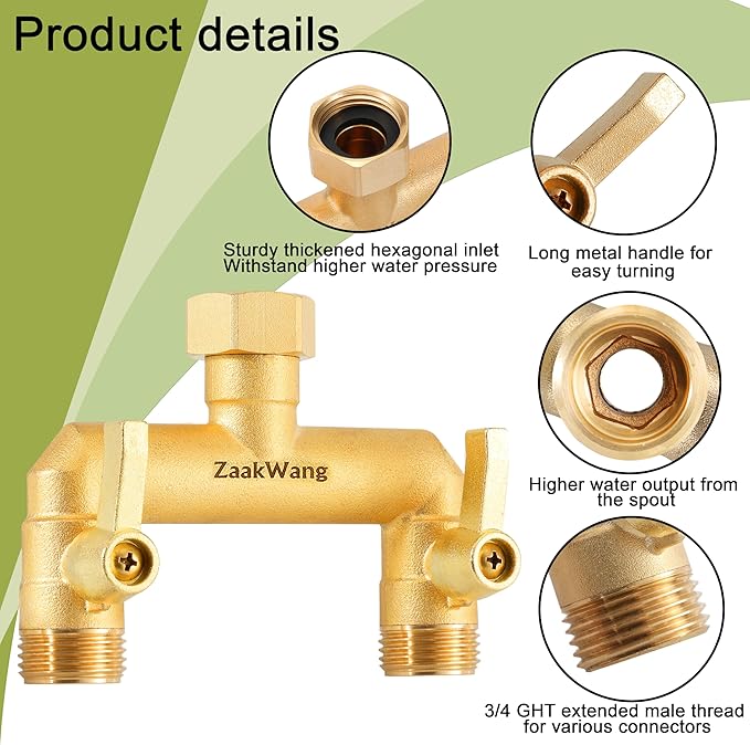 - SPOUT DESIGN: The hexagonal inlet nut is upgraded with 0.35 ounce brass material, repeatedly tested with 300PSI pressure and 100kg pull, it maintains long term stable operation and watertightnessFull flow spout for increased water supply. The spout is downward vertical and gravity keeps it connected vertically to hoses, waterers or other fittings, allowing multiple hoses to be connected at the same time, ensuring maximum efficiency for a variety of watering tasks to meet the daily needs of your garden.