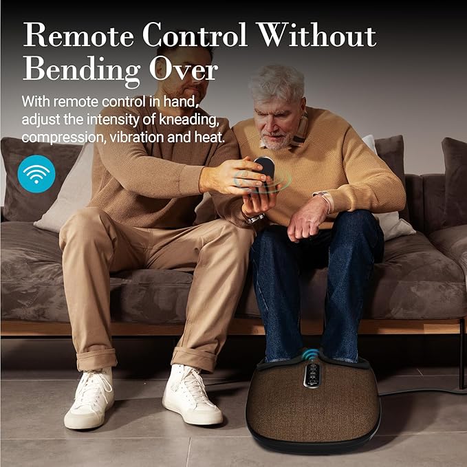 - User-Friendly Design: Customizable kneading, vibration, compression, and heat adjust to your preferences and tolerance levels for personalized comfort. The feet massager with remote control allows you to adjust massage settings without bending over, making it ideal for people with mobility issues, seniors or pregnant women.