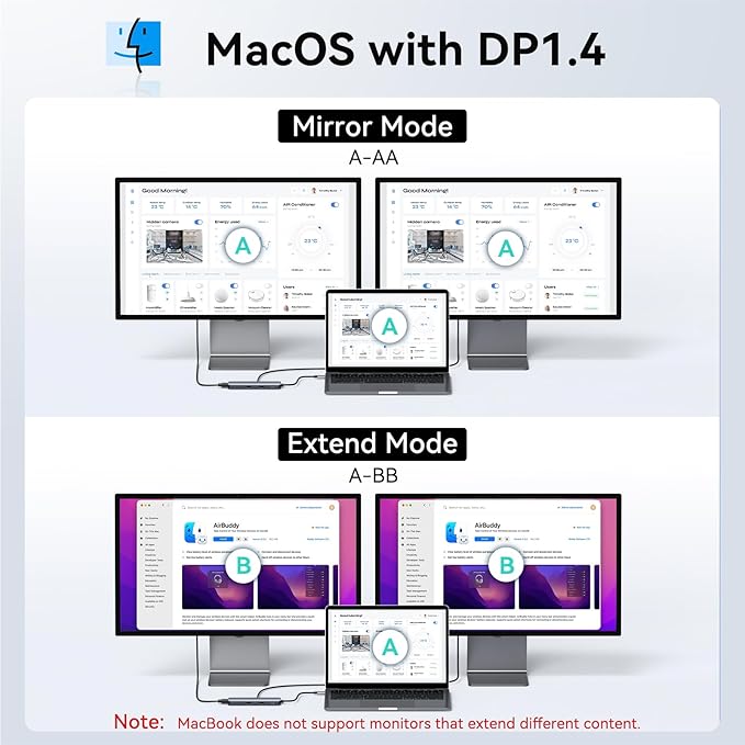 - 【Docking Station Dual Monitor】iMOKiN USB docking station featuring 1 HDMI (4K@60HZ) and 1 USB-C video (4K@60HZ) port. USB C docking station dual monitor supports Windows MST and SST (Mirror and Extend Mode). NOTE:USBC docking station DOES NOT support MacOS monitors that extend different content, it only supports mirror mode and non-mirror mode