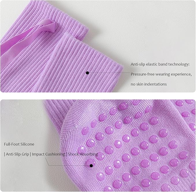- 【Full-Sole Silicone Grip】These non slip pilates socks for women feature silicone grips on the soles, provides superior traction and stability during every movement, ensuring no slips or shifts during workouts for yoga, pilates, barre, ballet, and other floor exercises, even without a mat.