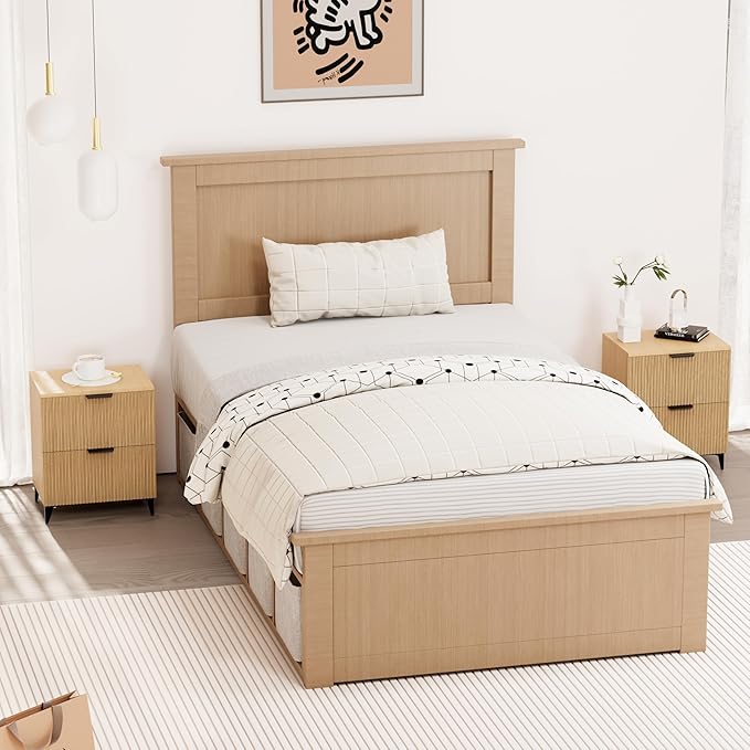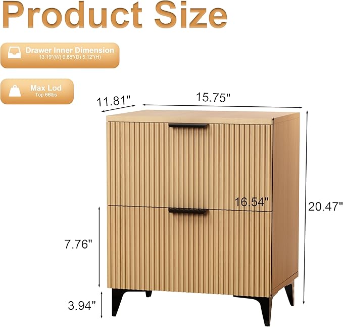 - 【Ample Storage Space】This bedside table measures 15.74" L x 11.81" W x 20.27" H, offering more storage capacity compared to standard designs. It features two spacious drawers, perfect for keeping bedtime essentials such as reading materials and frequently used items neatly organized.