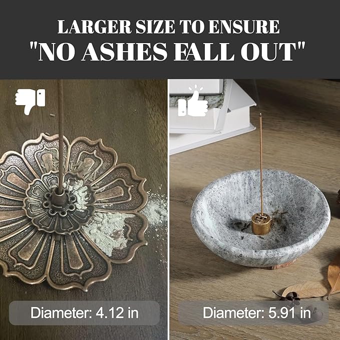 - 【Catch All the Incense Ash】The wider 5.91" diameter makes it catch ash easier.The surface of the incense burner is smooth and washable, very easy to clean.Can be widely used in living room, bedroom, study, meditation room, yoga room, etc