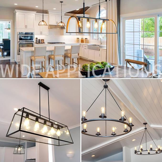- Easy to install and widely applicable - Standard American E26 medium base fits universal existing American E26 base and screw in the light fixtures directly.High quality LED light bulbs with ETL-Listed to avoid electrical shock and fire hazard.Note: This E26 LED bulb is not dimmable, please do not use them with dimmer switch.This Vintage LED Bulb is ideal for lanterns, ceiling fixtures, wall sconces, chandeliers, pendant lighting, wall lanterns, floor lamps, and table lamps,multiple places you would like to decorate with.