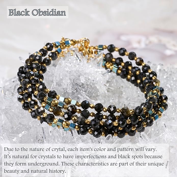 - Black Obsidian Bracelet: Black Obsidian is a crystal that shields you from negative energies and external disturbances. With its grounding energy, Black Obsidian instills a sense of security, helping you stay peace and steadfast in the face of challenges