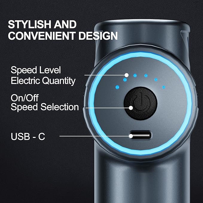 - 【Gravity sensor】This massage gun offers 6 speeds, with pressure response technology to automatically adjust speed and impact force. Provide you with a tailored impact massage experience. Just press a button to switch.