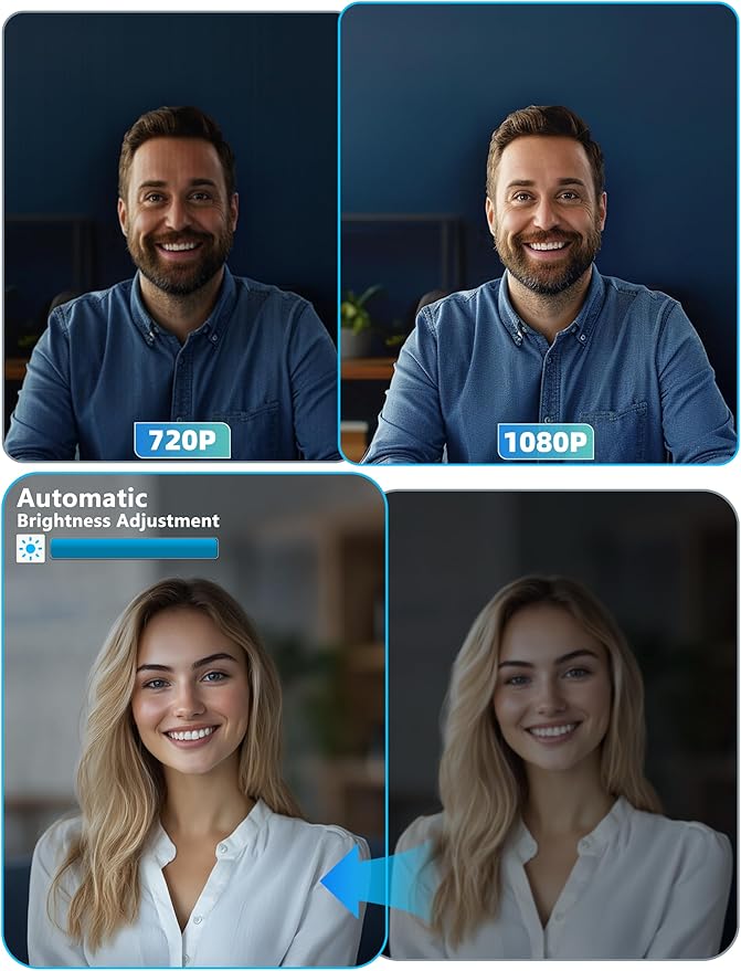 - 【Automatic Light Correction】Our Webcam applies automatic low light correction technology, this web cam adjusts the brightness and restores true colors based on the ambient light conditions. Enjoy the best optical effect for your video calls and streaming sessions.