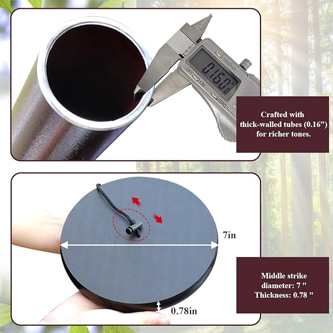 - Metal Wind Chimes - The extra large metal wind chime is made entirely of aluminum ,not only the six tubes,also the hook,the top part and the wind chimes pendulum,all durable anodized bronze finish.Thick tubing wall creates a longer lasting deep tone.Each tube is precision tuned to pentatonic scale.